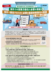 ・海外へ輸出するために必要な製造体制強化の取組みに要する経費(上限100万円)